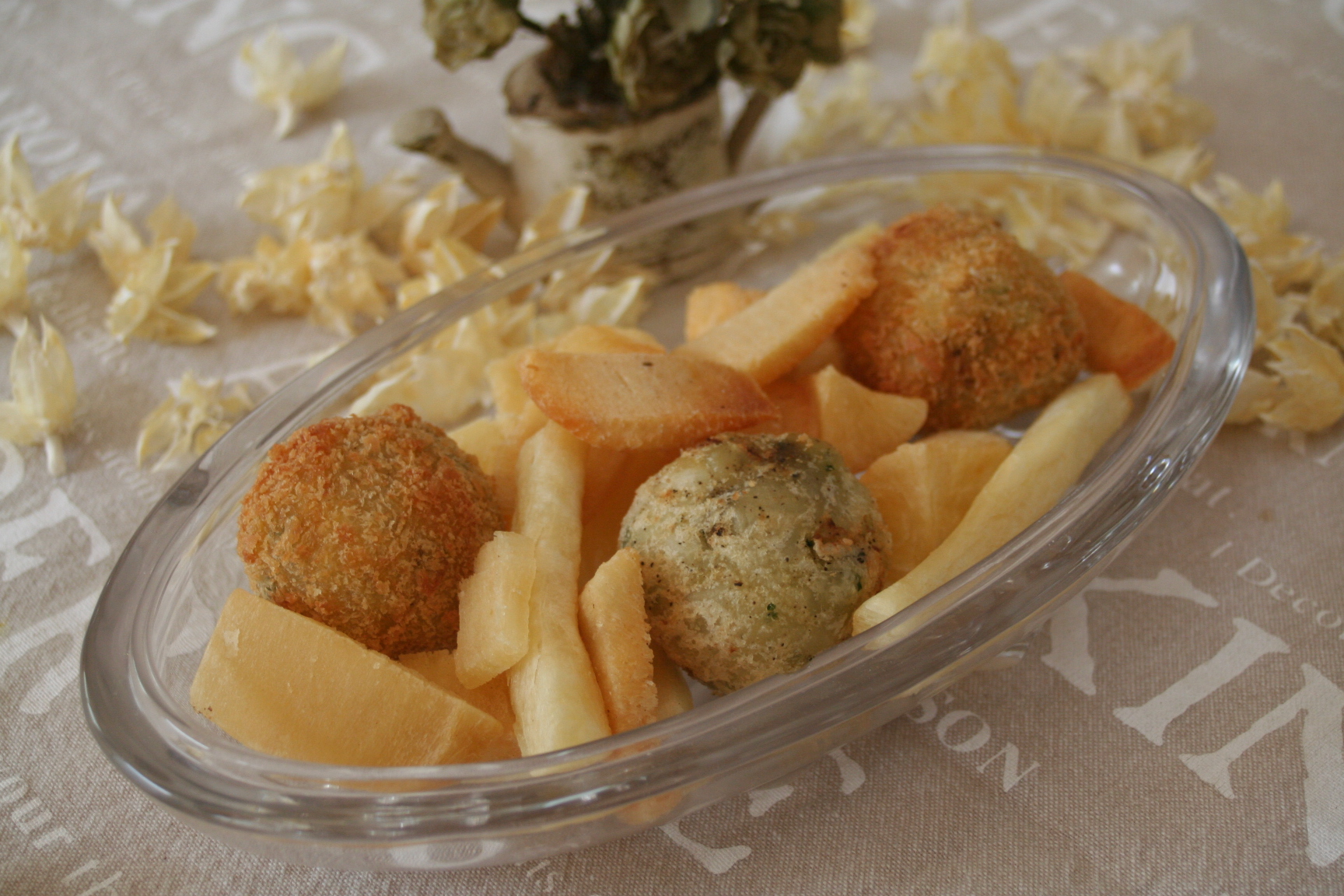 감자튀김에 비해 튀겨냈을때의 바삭함이 오래지속되며 기름기에 흡수가 적어 샐러드나 다양한