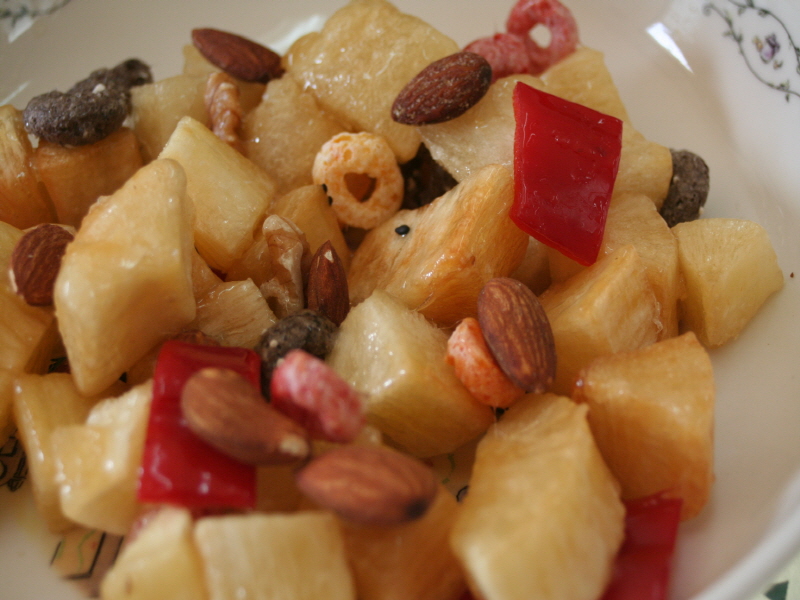 카사바뿌리에는 약20~25%의 녹말과 100g당 50mg양의칼슘, 40mg의인과 25mg의비타민c 성분으로 감자보다 칼로리는 10~15칼로리나 낮으면 Giycemic index(혈당지수)또한 낮아 포만감이 오래가 다이어트식품에도 탁월합니다.